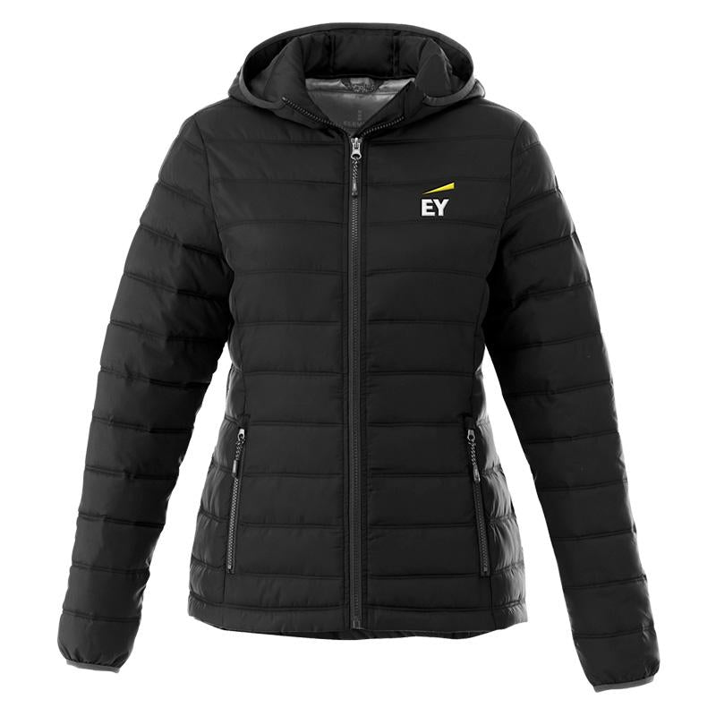 This puffer jacket is a combination of lightweight warmth and trendy retail styling. It provides protection from the elements with 100% polyester faux down insulation, an attached hood, interior storm flap with chin guard and water-repellent finish.
